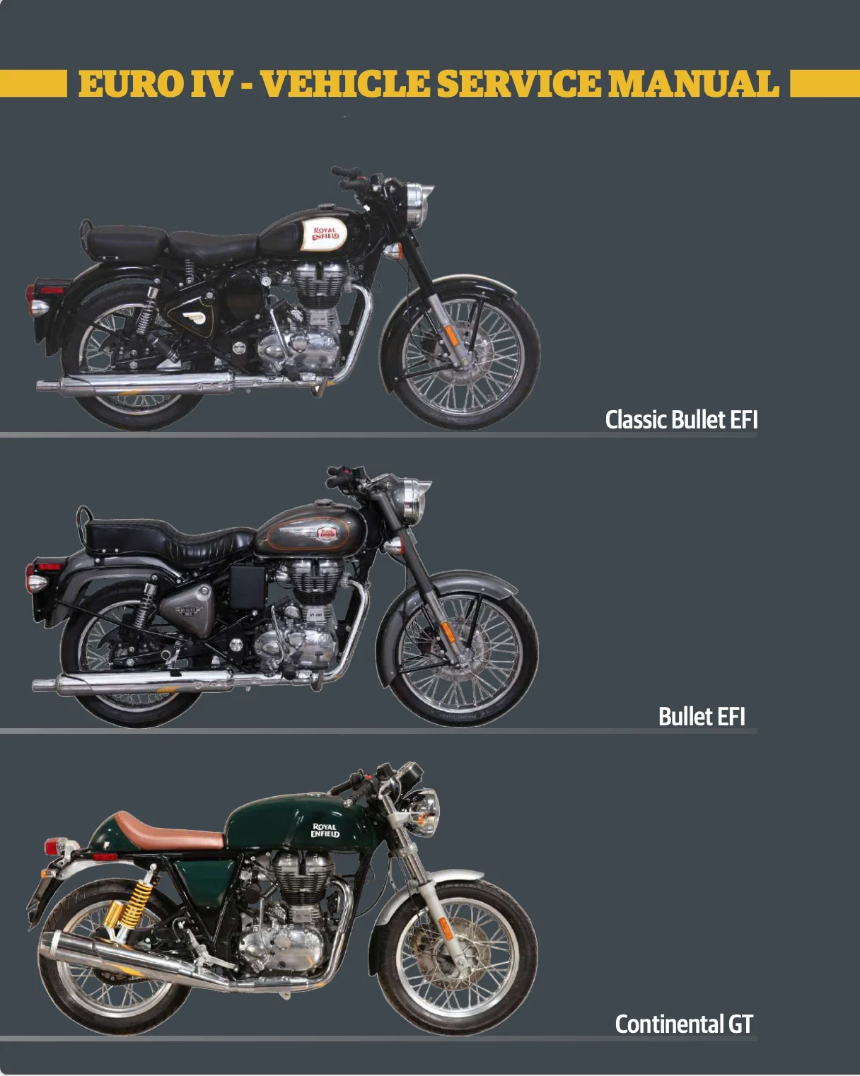 Complete PDF version of the Service Manual for the Royal Enfield Bullet EFI Euro IV. A MUST for every Bullet Injection owner.